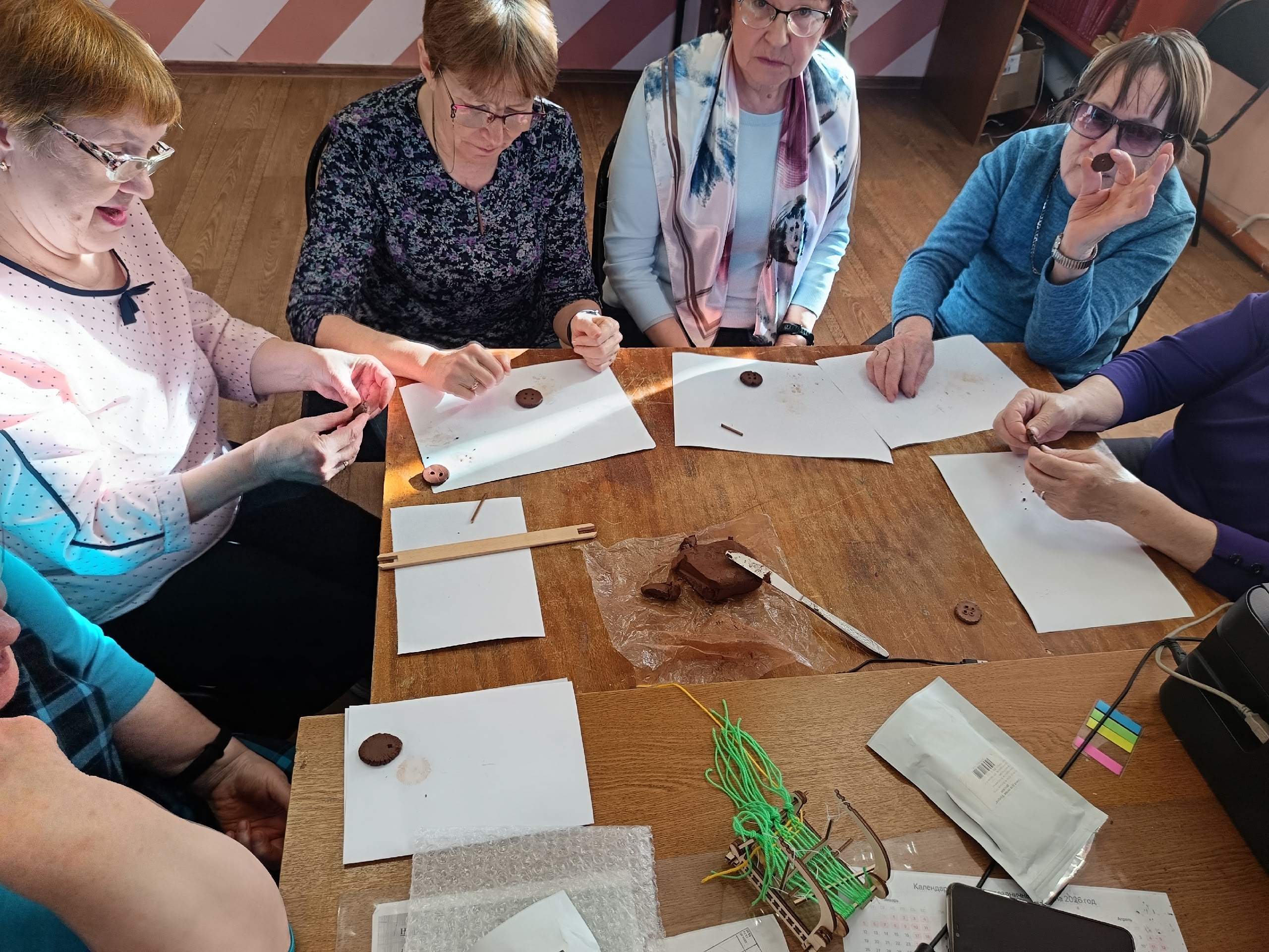 История гончарного дела вызвала интерес у всех. Многие жители Емецка помнят, что деревня Сухарево славилась гончарами, но не все знают, как и когда заготавливали глину в наших краях. Настоящим открытием для участников стал рассказ о мастере Аксенове, который делал из глины даже самовары. Один из его самоваров можно увидеть в краеведческом музее села Холмогоры. Каждый участник смог поработать с глиной и сделать небольшой сувенир.