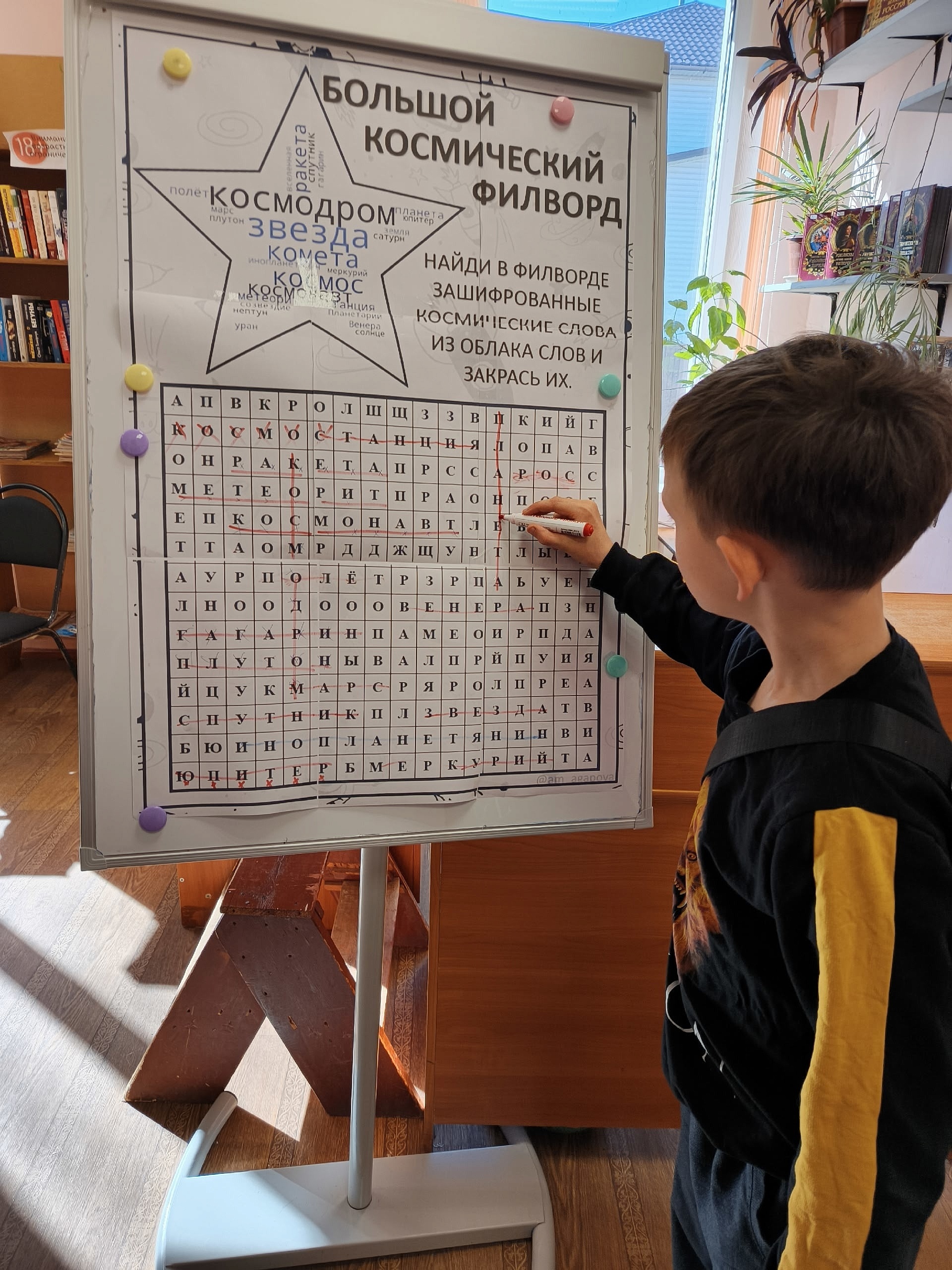 Емецкая библиотека имени Н. М. Рубцова присоединилась к всероссийской акции «Неделя космоса». Одним из ее ключевых событий стал большой «Космический филворд», участники которого решали головоломки, связанные с историей освоения космоса. Результаты интеллектуального турнира «Первые в космосе» продемонстрировали высокий уровень эрудиции наших читателей: все они показали глубокие знания не только о ключевых событиях и достижениях в области космонавтики, но и о выдающихся личностях, внесших значительный вклад в развитие этой сферы. Также в библиотеке были оформлены информационные и книжные выставки, которые сопровождали акцию на протяжении всей недели. Они привлекли внимание и подростков, и молодежи, и взрослых читателей, и вызвали интерес к научно-популярной литературе и современным исследованиям в области астрономии и космонавтики.