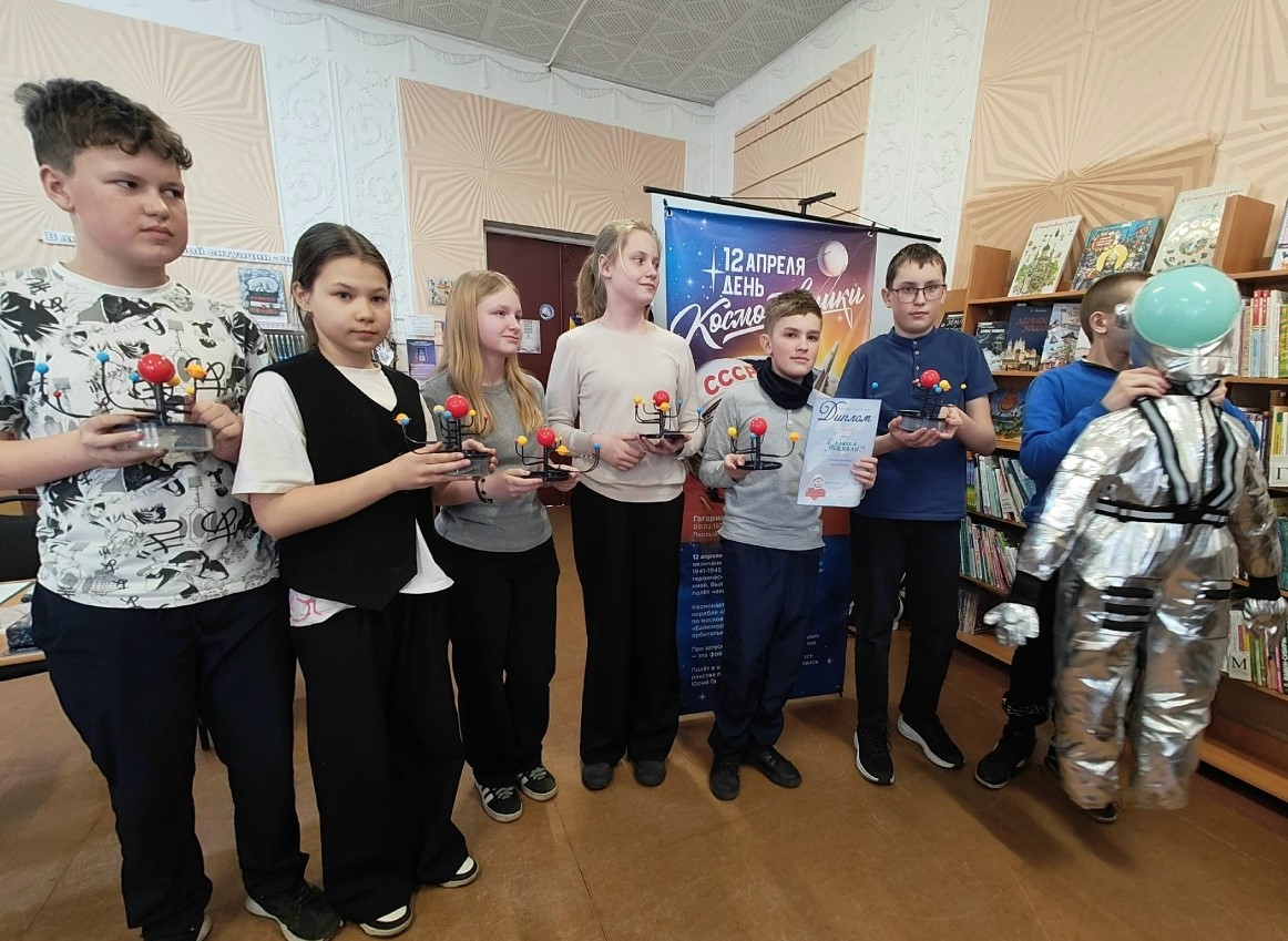 Также в преддверии Дня космонавтики для учеников Верхне-Матигорской средней школы состоялся космический батл «Как Гагарин». Ребята посмотрели обучающее видео, ответили на вопросы «космической» викторины, выяснили, кто лучше знает историю освоения космоса, с помощью тайного шифра разгадали, какое послание оставил Юрий Гагарин людям. А еще они узнали, какие требования предъявляются к будущим покорителям космоса, какие традиции и приметы есть у российских космонавтов. В ходе напряжённой борьбы команда «Поехали!» вырвалась вперёд всего на пару баллов! В конце игры всех ждал сюрприз - подарочные наборы «Солнечная система».