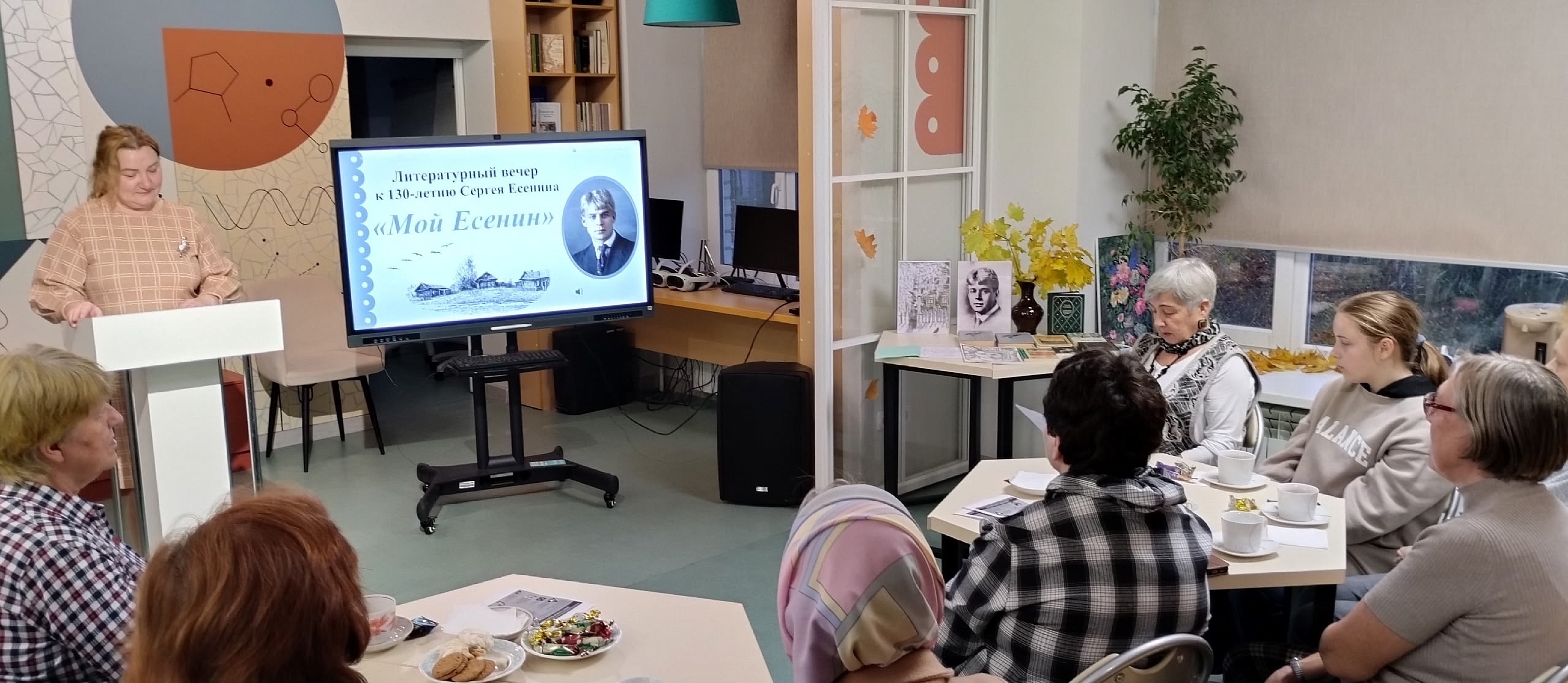 В Холмогорской районной библиотеке имени М. В. Ломоносова прошел литературный вечер «Мой Есенин», участники которого узнали о разных этапах жизни поэта и особенностях его творчества. Основная тема его произведений — любовь к родной земле. Сергей Александрович прожил очень короткую жизнь, но успел сделать много и был по-настоящему народным поэтом. Особое внимание уделили влиянию женщин на его творчество: Зинаиды Райх, Айседоры Дункан, Софьи Толстой. Читатели узнали о привычках и интересах Есенина, его любимых блюдах и других деталях повседневной жизни. Большое впечатление произвела аудиозапись голоса поэта. И конечно, в исполнении гостей на вечере прозвучали стихи и музыкальные номера.
